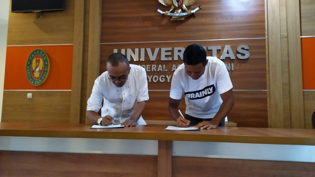 Sleman, Jumat, 7 Februari 2020, Fakultas Teknik & Teknologi Informasi (FTTI) Universitas Jenderal Achmad Yani (Unjani) Yogyakarta, menerima kunjungan dari Dimas Mukhlas Widiantoro, S.E., S.Kom., M.Sc., Ph. D. cand., Senior Manager Brainly, Inc., Polandia dalam rangka kerjasama untuk meningkatkan skill lulusan mahasiswa, serta peluang kerjasama dalam penelitian dosen-dosen Program Studi yang berada di bawah FTTI Unjani Yogyakarta. Misi besar dari kunjungan dan kerjasama ini adalah sebagai salah satu ikhtiar untuk mempersempit kesenjangan pendidikan di Indonesia. Brainly, Inc., merupakan sebuah perusahaan internasional berlokasi di Kraków, Polandia, yang bergerak di bidang jejaring pembelajaran berbasis internet. Melalui jejaring pembelajaran ini Brainly berusaha untuk menyebarkan pengetahuan khususnya untuk siswa tingkat SD, SMP dan SMA melalui media pembelajaran online. Brainly Inc bekerjasama dengan FTTI Unjani Yogyakarta untuk mempersiapkan para Teaching Assistans yang akan menjadi katalis pengetahuan antara Brainly dengan para pelajar khususnya di Indonesia.