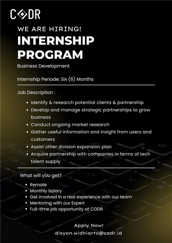 Berikut kami sampaikan informasi lowongan pekerjaan dari Code Masters, untuk informasi lebih lengkap bisa dilihat pada WEB resmi perusahaan.
