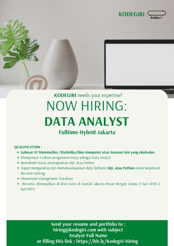 Kodegiri saat ini membuka lowongan kerja dengan ketentuan sbb :