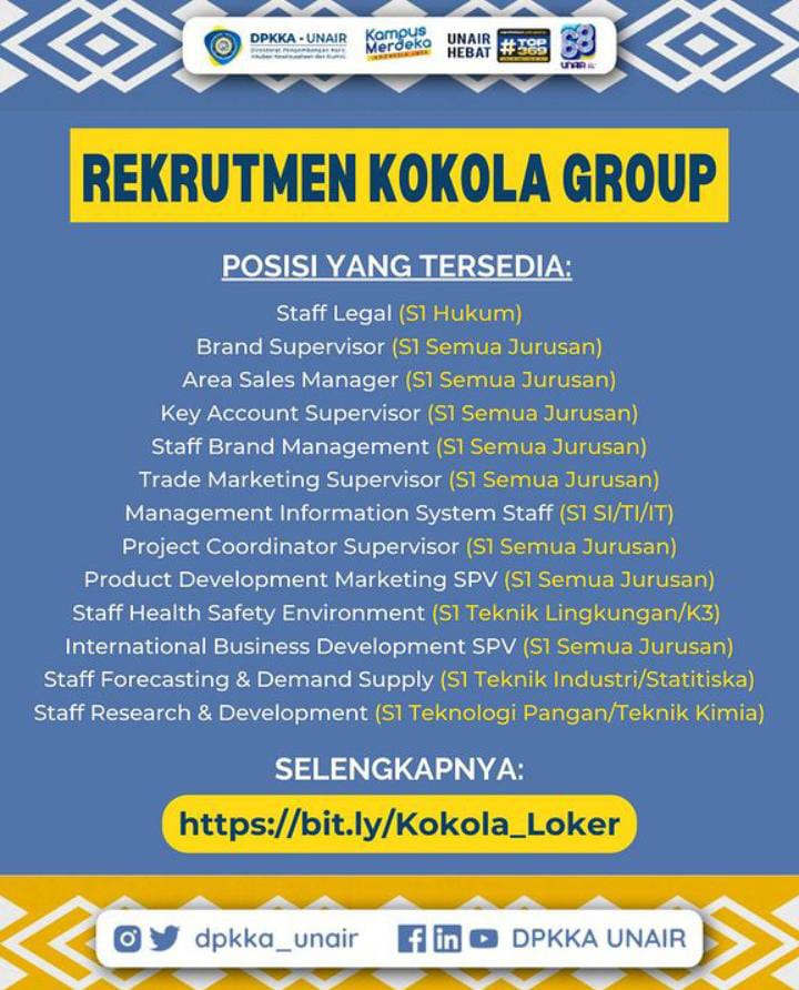 Informasi selengkapnya Http://bit.ly/Kokola_loker atau silahkan lihat di web perusahaan.