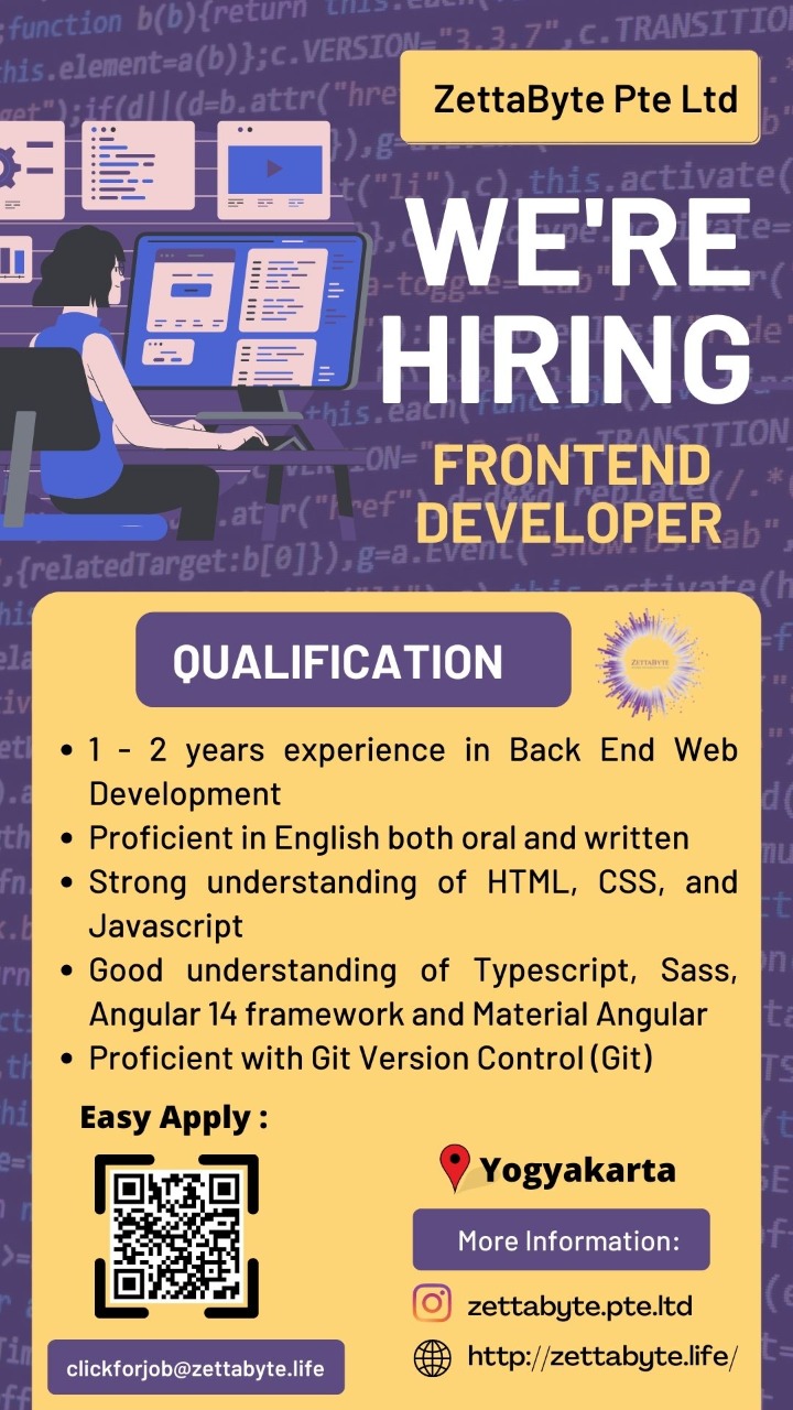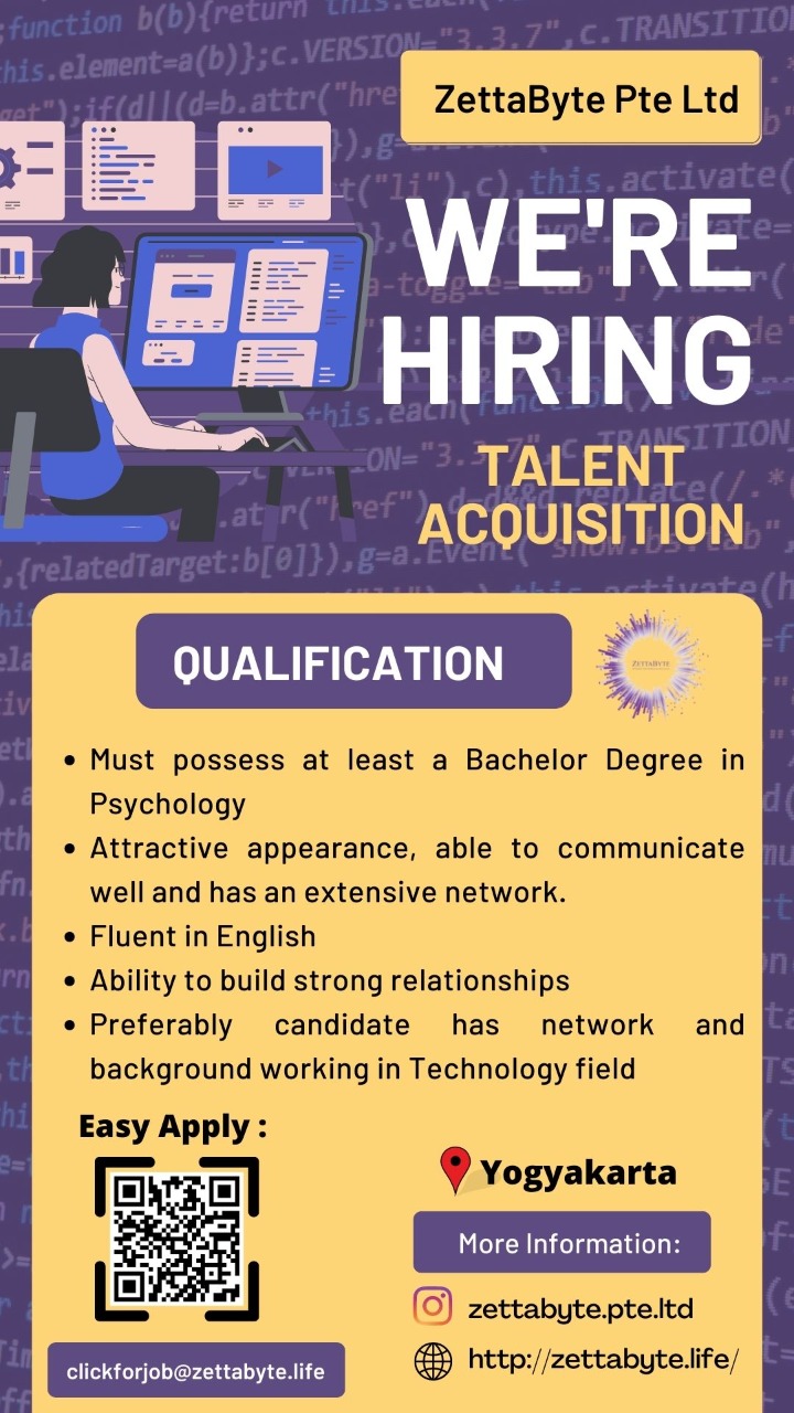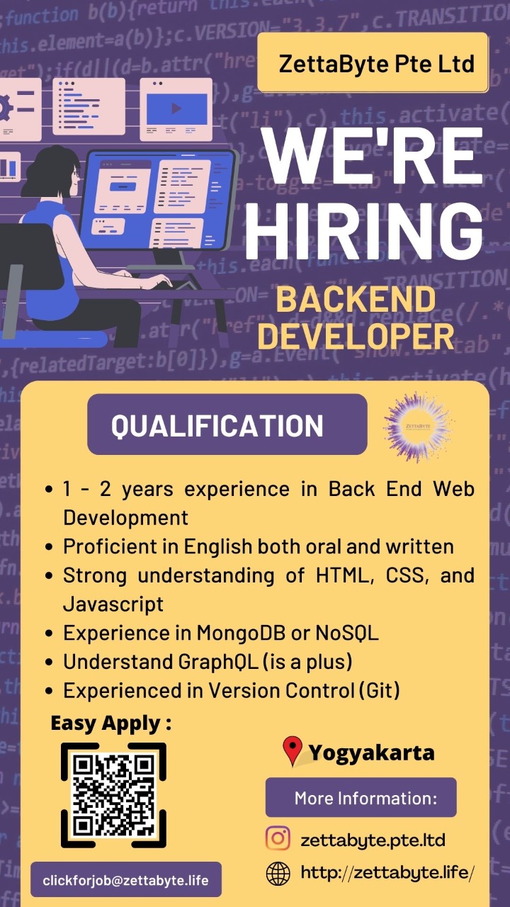 Berikut kami sampaikan informasi lowongan kerja dari ZettaByte Pte Ltd untuk posisi :