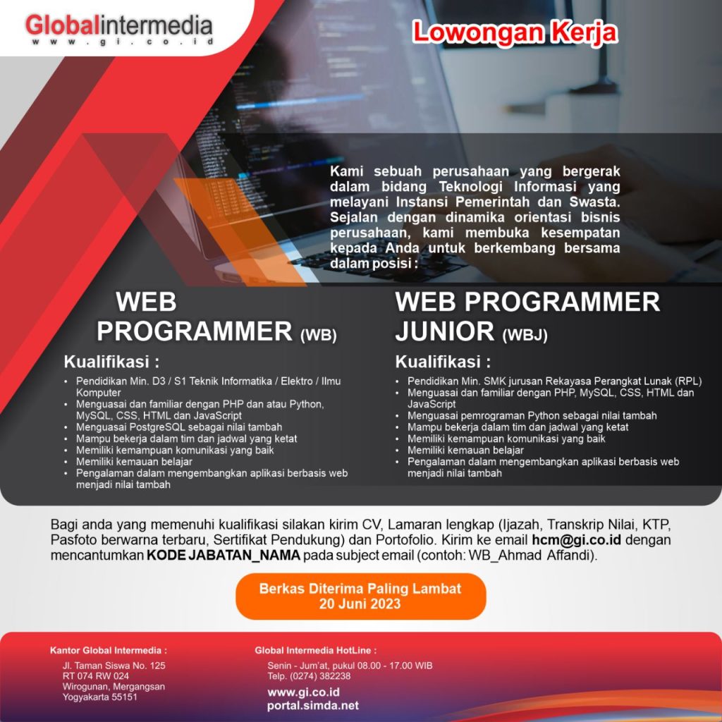 Berikut kami sampaikan informasi lowongan pekerjaan dari Globalintermedia, untuk informasi lebih jelas dapat dilihat pada WEB resmi perusahaan.