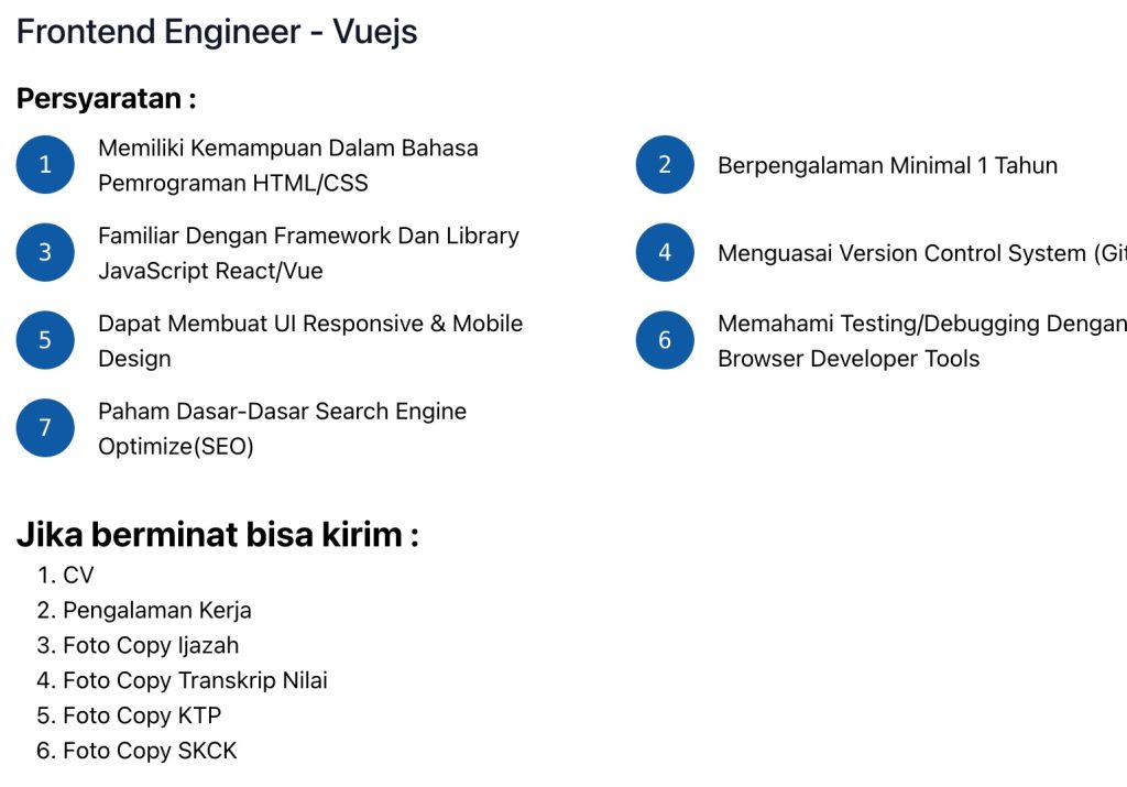 - Minimum 1 year of professional experience in FrontEnd Development using Vue.js. – Strong