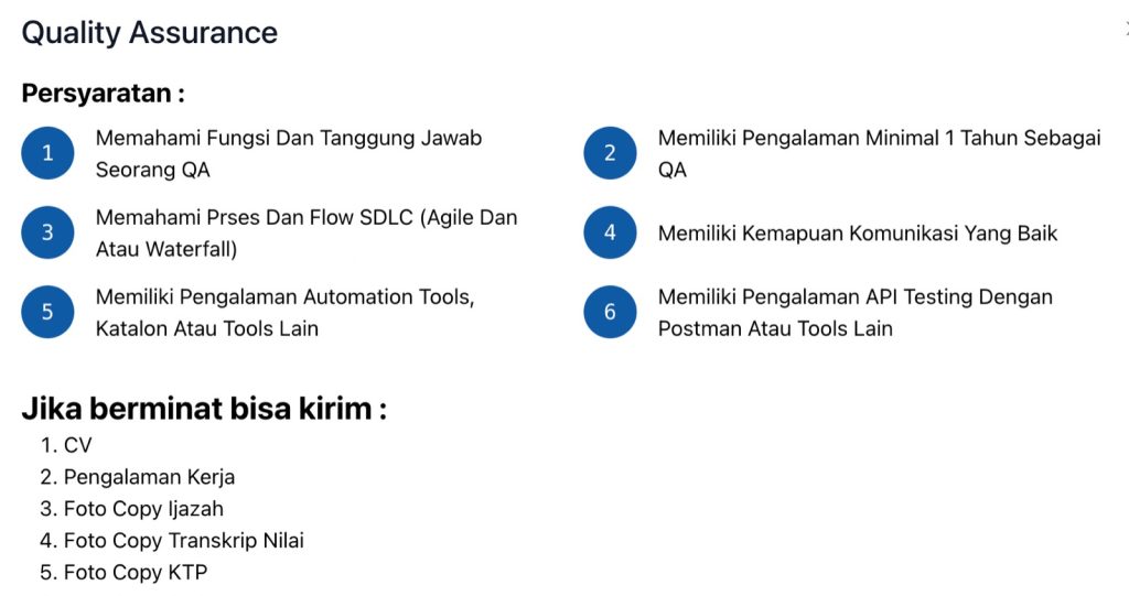 Job Requirements: - Experience: Minimum 1 year of experience as a Quality Assurance Developer in a software