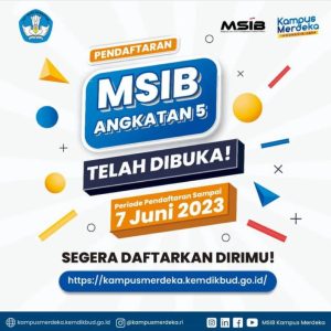 Program Magang dan Studi Independen Bersertifikat (MSIB) kembali diselenggarakan untuk angkatan yang kelima. Peluncuran MSIB 5 dilakukan Rabu (5/4/2023) secara daring melalui platform Zoom Meeting dan kanal Youtube Ditjen Diktiristek. Periode pendaftaran dan pengumpulan proposal untuk mitra dibuka pada tanggalโฆ