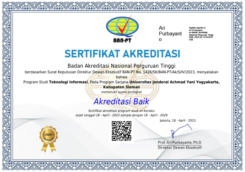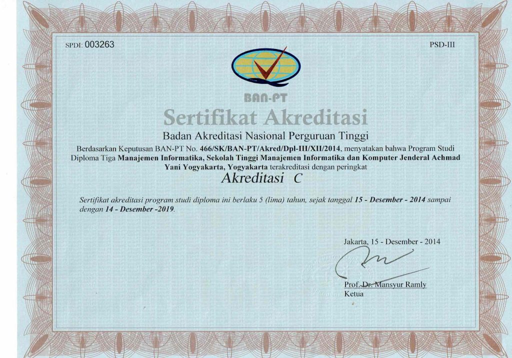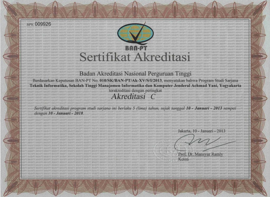 - Sertifikat Akreditasi Program Studi,